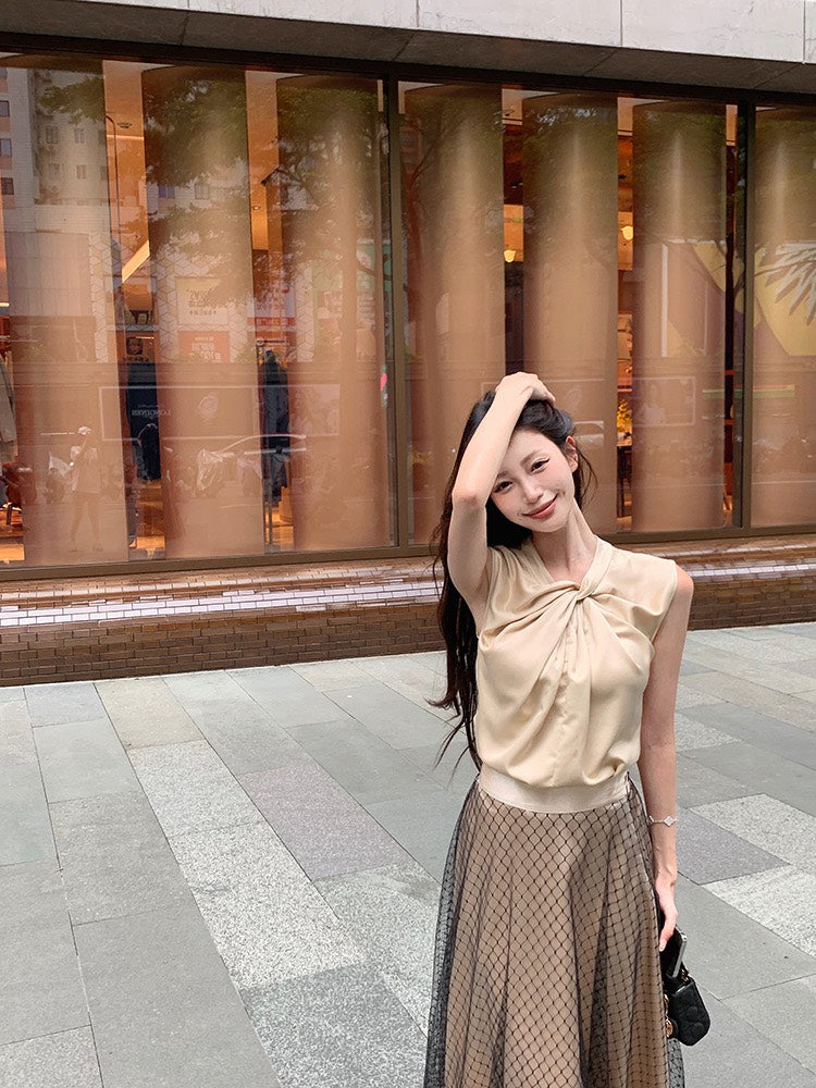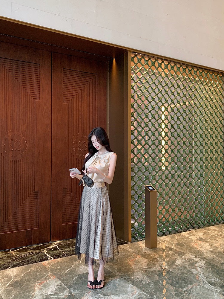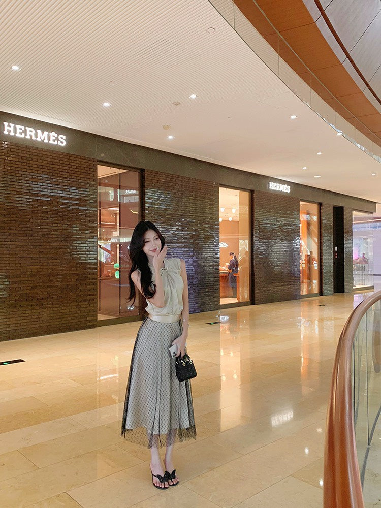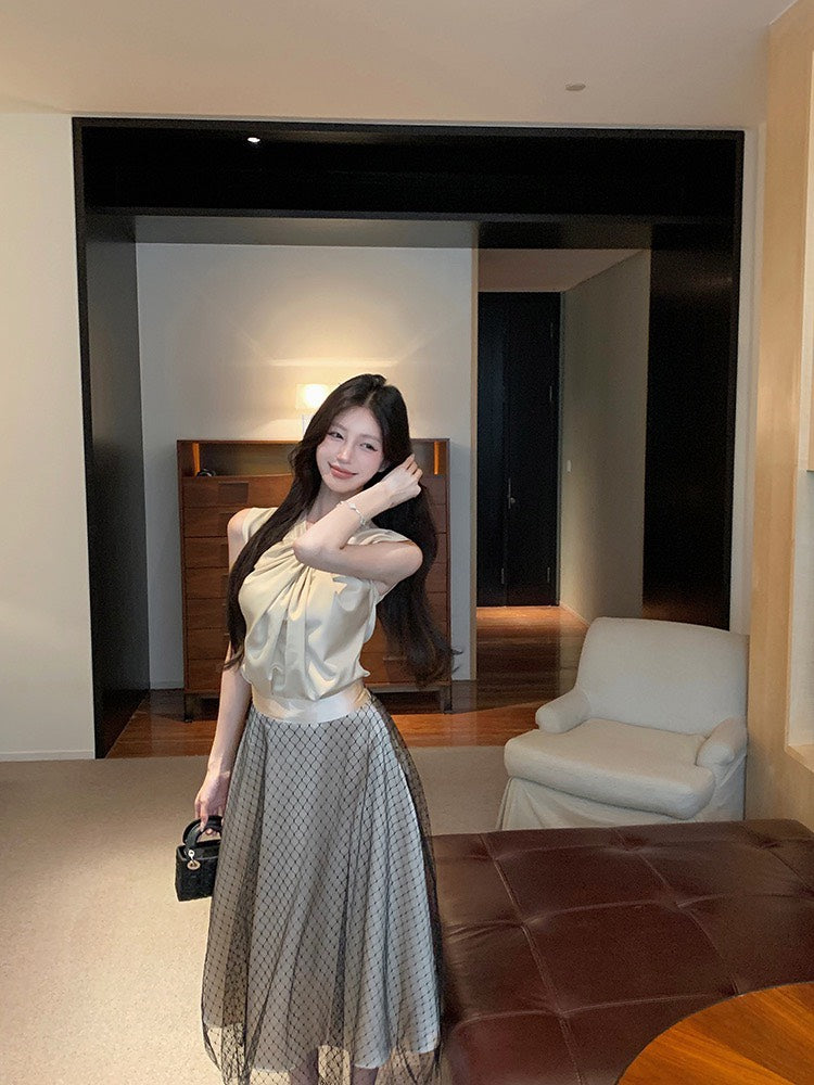 NA+ 黑閃耀人魚紗雙層半身裙 金色扭結上衣