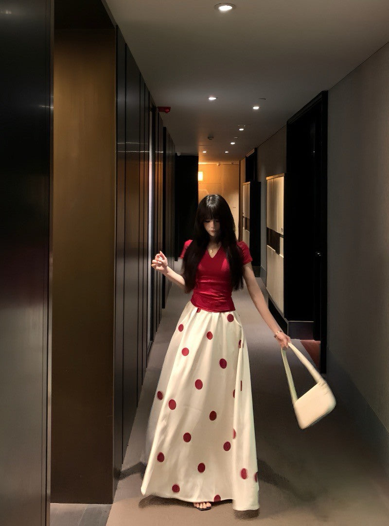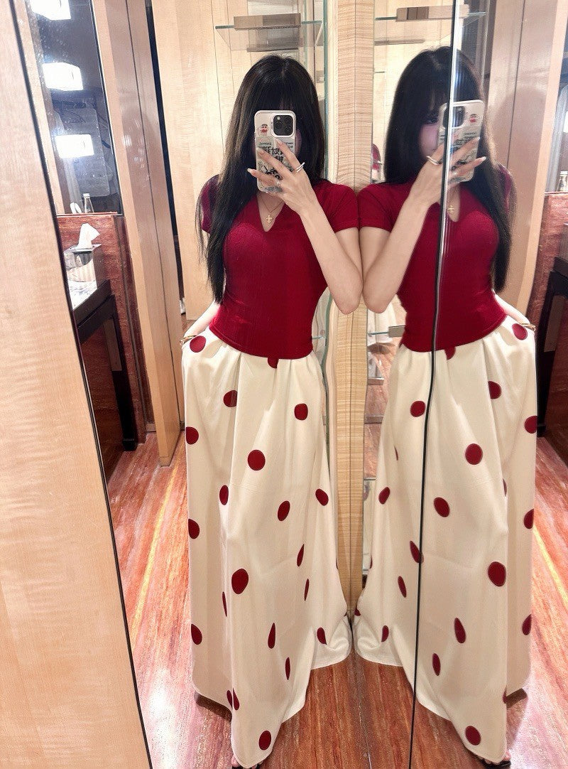 Na+ Redshow 復古V領收腰上衣 波點半身裙