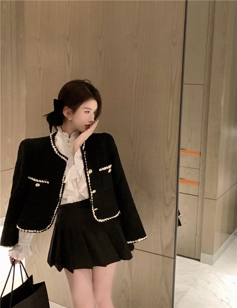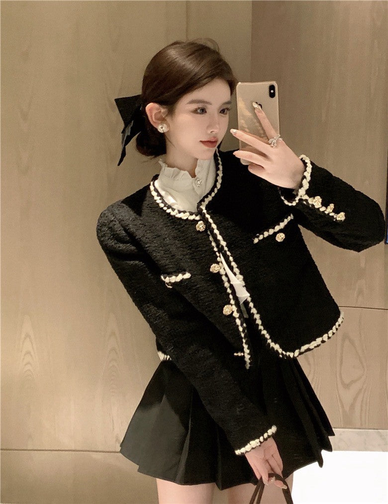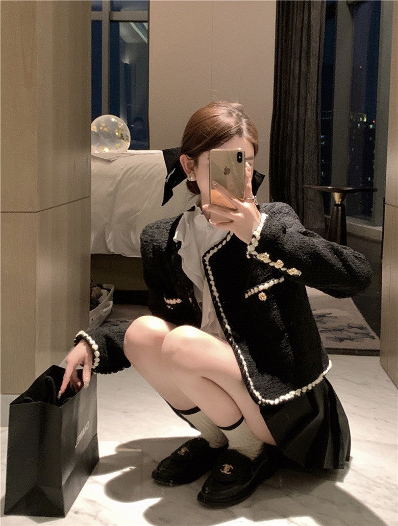 NA+ vintage復古小香粗呢墊肩外套